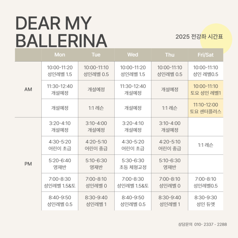2025년 전 강좌 스케쥴
